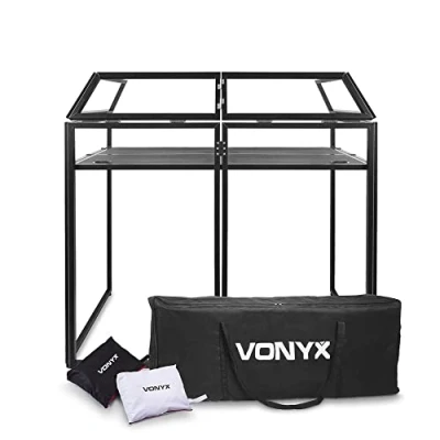 VONYX DB3 Mobile DJ Booth with Black & White Lycra Covers Portable Stand for Events, Easy Setup Stylish Design, Perfect Professionals and Enthusiasts