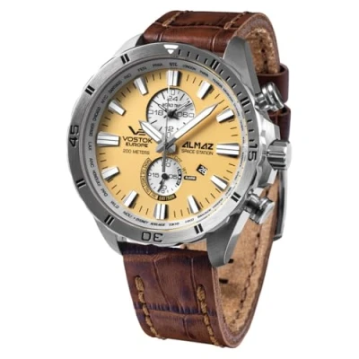 Vostok Europe Men Analog Chronograph Watch with Leather Strap 320A655 L