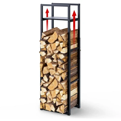 General description The VOUNOT Firewood Log Rack is designed for efficient and organized firewood storage. With a modern and minimalist style, it features a sturdy metal structure and an integrated MDF shelf for added convenience. This vertical log holder is perfect for both indoor and outdoor use, ensuring your firewood is easily accessible and well-ventilated. Technical specifications Dimensions: 45 x 32 cm Adjustable Heights: 120 cm, 145 cm, 170 cm Weight: 7.3 kg Materials: Metal, MDF Color: Black Contents: 1 Log rack, 1 Mounting kit, 1 Instructions Installation Assemble by tightening the screws moderately, then check the tightness of all elements before use. Ensure installation on a flat surface. No tools are required for assembly, allowing for quick setup in just minutes. Usage This log rack is ideal for storing firewood in an organized manner, providing easy access while keeping the wood dry. The integrated shelf can be used for storing fireplace accessories or kindling. Other