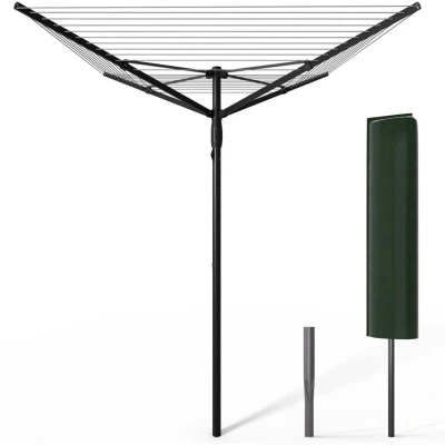 VOUNOT 45m Rotary Washing Line 4 Arm Clothes Airer with Cover and Spike, Black