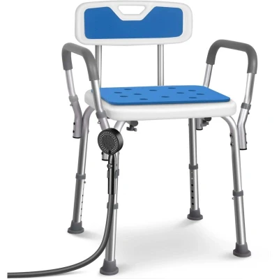 VOUNOT Adjustable Shower Stool w/Backrest & Armrests, Max Load 136 kg, Blue