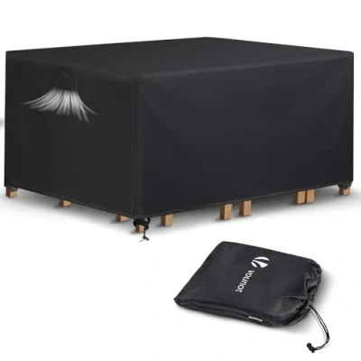 Waterproof and Reinforced: Made from 420D oxford with reinforced lines , It is multi-layer PU coated which provides reliable protection against rain or snow. Waterproof tape is added to the joints to prevent leakage. Heavy-Duty Performance: Crafted with 140g sturdy materials with waterproof stitchin, this cover is built to withstand the elements and protect your furniture from rain, snow,dust, dirt or UV rays. All-round protection of your furniture. Windproof Design: Equipped with drawstring and four buckle clips at each corner, this cover stays securely in place even during strong winds, ensuring your furniture remains protected. Breathable and Ventilated: Designed with extra air vents, this cover allows proper airflow to prevent condensation. The two resistant handles make it easy to put on and remove. Easy to Clean and Store: Simply hose it down with water and let it dry in the sun, or wipe it clean with a damp cloth. The cover also comes with a convenient storage bag for easy storage when not in use. Please measure your furniture size before buying. Our furniture cover is suitable for most shapes, such as dining table, rattan furniture, sofa, coffee table, etc., Weight: 2.0 pounds, Manufacturer: VOUNOT