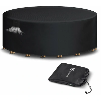 ManoManoGeneral description VOUNOT Garden Furniture Covers are designed to provide reliable protection for your outdoor furniture. Made from high-quality materials, these covers are waterproof, UV resistant, and suitable for various sizes of furniture, ensuring your patio set remains in excellent condition regardless of the weather. Technical specifications Dimensions: Ø190x73cm Material: 420D Oxford with reinforced lines Available sizes: 250x250x73cm, 242x162x73cm, 213x132x73cm, 180x120x73cm, 135x135x73cm Compatibility and accessories Suitable for various shapes of furniture including dining tables, rattan furniture, sofas, and coffee tables. Includes 1 x furniture cover and 1 x storage bag. Installation Easy to install with drawstring and four buckle clips at each corner to secure the cover in place. Usage Simply hose down with water for cleaning or wipe with a damp cloth. Allow to dry in the sun before storing. Use the storage bag for convenient storage when not in use. Other information