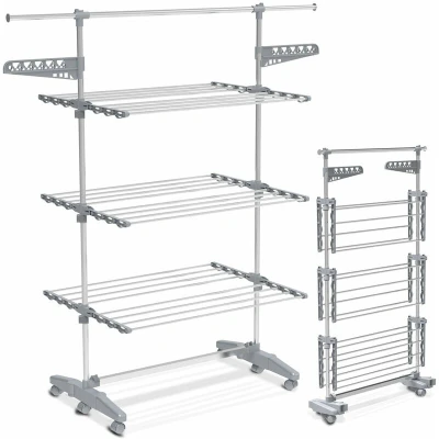 VOUNOT Large 3 Tier Clothes Airer, Laundry Drying Rack Foldable Stainless Steel Horse for Indoor Outdoor
