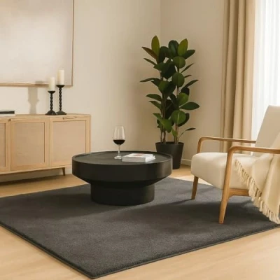 ManoManoGeneral description VOUNOT Living Room Rug is an ultra-soft shaggy area rug designed for modern interiors. Measuring 240x340cm, this anthracite rug is crafted from 100% low-pile polyester, providing a plush and velvety texture that enhances comfort in any living space. Technical specifications Material: Polyester, PVC Weight: 2.25 kg Thickness: 10 mm Available sizes: 80x150 cm, 120x160 cm, 140x200 cm, 160x230 cm, 200x300 cm, 240x340 cm Available colors: Anthracite, Grey, Beige, Cream Compatibility and accessories Non-slip rug pad included (70x140 cm) Installation Easy to install with a discreet non-slip backing for secure placement on various flooring types including parquet, tiles, and laminate. Usage Machine washable at 30°C for easy maintenance. Compatible with robot vacuum cleaners, making it ideal for households with kids or pets. Other information