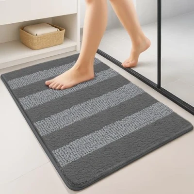 This ultra-soft microfiber and chenille bath mat feels comfortable underfoot. Ideal after a shower or bath, it's suitable for everyday use. It feels like a cozy cloud and also protects your feet from cold tiles. Our bath rug keeps your bathroom floor clean and dry. No worries about wet floor. Suitable for both adults and children. The back TPR material provides excellent grip on dry floors such as tiles. This bath mat stays firmly in place after a shower or bath, without slipping or shifting. Simply place it on a clean, dry surface: no anchoring system is necessary. Our bathroom mat quickly absorbs water from your wet feet. It dries your feet within a few seconds with excellect breathability drying speed, limiting the formation of puddles around the shower or sink. A suitable choice for everyday use in the bathroom. This bath mat can be simply machine washed. Don't worry about fiber loosening. It retains its shape, color, and softness even after multiple washes. No special care is required. It's a practical choice for daily use in bathroom. The rug is suitable for the bathroom, hallway, living room, toilet or kitchen. Its elegant design easily blends into your interior decor. Different sizes&colors are avilable for your to match your room! A set of two rugs is also available. Elevate your bathroom aesthetic with our wavy pattern bathroom mat.