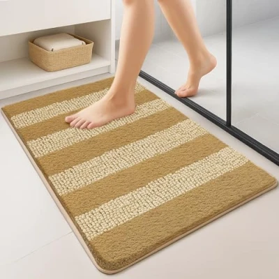 This ultra-soft microfiber and chenille bath mat feels comfortable underfoot. Ideal after a shower or bath, it's suitable for everyday use. It feels like a cozy cloud and also protects your feet from cold tiles. Our bath rug keeps your bathroom floor clean and dry. No worries about wet floor. Suitable for both adults and children. The back TPR material provides excellent grip on dry floors such as tiles. This bath mat stays firmly in place after a shower or bath, without slipping or shifting. Simply place it on a clean, dry surface: no anchoring system is necessary. Our bathroom mat quickly absorbs water from your wet feet. It dries your feet within a few seconds with excellect breathability drying speed, limiting the formation of puddles around the shower or sink. A suitable choice for everyday use in the bathroom. This bath mat can be simply machine washed. Don't worry about fiber loosening. It retains its shape, color, and softness even after multiple washes. No special care is required. It's a practical choice for daily use in bathroom. The rug is suitable for the bathroom, hallway, living room, toilet or kitchen. Its elegant design easily blends into your interior decor. Different sizes&colors are avilable for your to match your room! A set of two rugs is also available. Elevate your bathroom aesthetic with our wavy pattern bathroom mat.