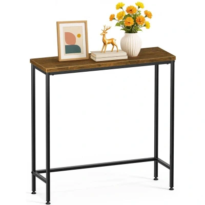 VOUNOT Slim Console Table, Metal Frame Entryway 75x24x75 cm, Brown