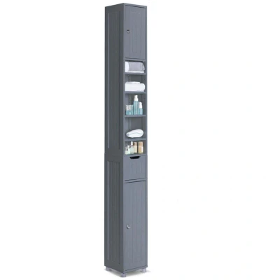 VOUNOT Tall Bathroom Cabinet Freestanding Storage with Adjustable Shelf, 1 Drawer and 2 Doors Wooden Cupboard for Bedroom Living Room Kitchen Hallway, 20x20x180cm Grey