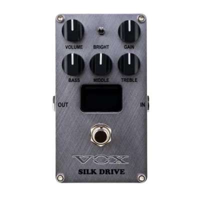 The VOX VALVENERGY series offer four distinctive sounding effects pedals that put the sounds of classic valve amps amd the response and harmonic distortion of a tube amp into a foot pedal Each pedal uses Nutube (Vacuum fluorescent display technology) which works like a conventional vacuum tube but is smaller and more reliable but delivers the same rich overtones and sense of power of a vacuum tube amp The SILK DRIVE pedal gives you the sound of a legendary boutique valve amp. Covering the range from warm clean tones to bluesy overdriven tones whilst catching all the nuances of your picking. This unit is great for tube compression distinctive of a vacuum tube amp Controls: GAIN, VOLUME, TREBLE, MIDDLE, BASS plus a BRIGHT switch which is placed before the distortion stage to give a different character of distortion in each position Each pedal is equipped with a high-contrast OLED display showing as an oscilloscope providing a visual image of how the waveform is affected by the knob settings
