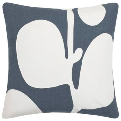 Voyage Maison Betel Feather Filled Cushion 100% Cotton Abstract Leaf Appliqué Decorative Pillow (Bluebell 50x50cm)
