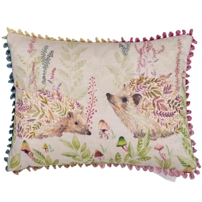 ADORABLE WOODLAND DESIGN: Featuring two charming hedgehogs frolicking amongst delicate forest foliage, this design captures the playful spirit and beauty of the British countryside. HAND-PAINTED IN WATERCOLOUR: Expertly painted in-house using soft, expressive watercolours, each piece radiates artistic craftsmanship and natural character. PRINTED AND CRAFTED IN THE UK: Part of Voyage Maison’s enchanting Woodland Tales collection, this cushion is proudly printed in-house and meticulously handcrafted by skilled artisans. CUSHION COVER ONLY: Designed with a discreet zip, allowing you to easily remove and add inner pads while maintaining a sleek, elegant finish. DRY CLEAN ONLY: Professionally dry clean to maintain the cushion’s luxurious finish and lasting quality.