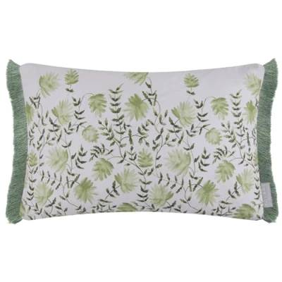 Voyage Maison Elai Feather Filled Cushion Watercolour Floral Block Print Ruche Trim Boho Country Décor (Sage 40x60cm)