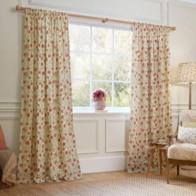 Voyage Maison Elai Pencil Pleat Curtain Pair 100% Cotton Nature Inspired Country Floral Design (Orange 229x229cm)