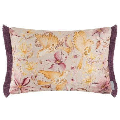 Voyage Maison Floella Cushion Cover Watercolour Floral Damask Bird Botanical Decorative Case (Primrose 40x60cm)