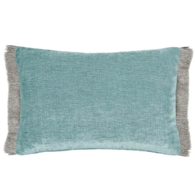 Voyage Maison Isernia Feather Filled Cushion Luxury Chenille Fringed Edge Decorative Pillow (Aqua 40x60cm)