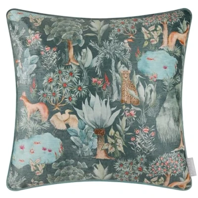 EXQUISITE HAND-PAINTED ARTISTRY: Featuring a serene watercolour scene of camouflaged wildlife, tropical birds, and lush jungle foliage, this cushion invites you to discover nature’s hidden treasures. LUXURIOUS DIGITAL PRINTING: The vibrant hand-painted design is brought to life through high-definition digital printing on a soft cotton blend, ensuring lasting colour and clarity. PART OF THE EVERGREEN COLLECTION: A signature piece from Voyage Maison’s Evergreen Collection, this cushion celebrates the rich beauty of botanical life with imaginative detail. PREMIUM COTTON BLEND FABRIC: Soft to the touch yet durable, the high-quality fabric makes this cushion a comfortable and refined addition to any interior. ELEGANT PIPED FINISH: The tailored piped trim lends a polished edge, enhancing the cushion’s sophisticated silhouette and timeless appeal.