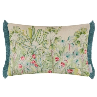 Voyage Maison Mangrove Feather Filled Cushion Jungle Watercolour Printed Velvet Wildlife Botanical Fringed Trim Decor (Multicolour 40x60cm)