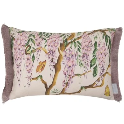 Voyage Maison Mariposa Feather Filled Cushion Fringed Wisteria Floral Cotton Blend Velvet Spring Summer (Cream 40x60cm)