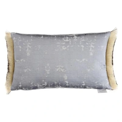 Voyage Maison Orta Feather Filled Cushion Jacquard Velvet Luxury Fringed Decorative Pillow (Silver 40x60cm)