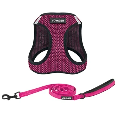 Voyager Step in Air All Weather Mesh Harness and Reflective Dog 5 ft Leash Combo with Neoprene Handle, for Small, Medium Large Breed Puppies by Best Pet Supplies Fuchsia (Leash Bundle), L