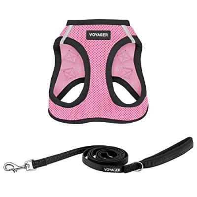 Voyager Step in Air All Weather Mesh Harness and Reflective Dog 5 ft Leash Combo with Neoprene Handle, for Small, Medium Large Breed Puppies by Best Pet Supplies Pink Base, L