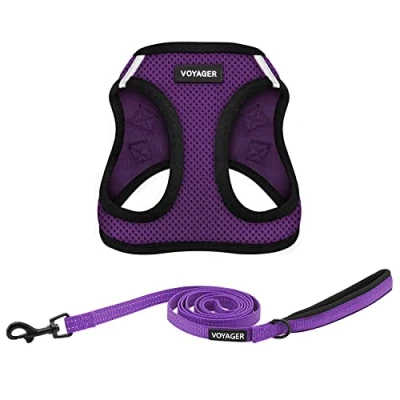 Voyager Step in Air All Weather Mesh Harness and Reflective Dog 5 ft Leash Combo with Neoprene Handle, for Small, Medium Large Breed Puppies by Best Pet Supplies Purple/Black Trim, X Small