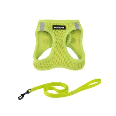 Voyager Step in Air Cat Leash Harness Set All Weather Mesh, Vest for Small and Large Cats by Best Pet Supplies Lime Green, XS (Chest 13.5 15")