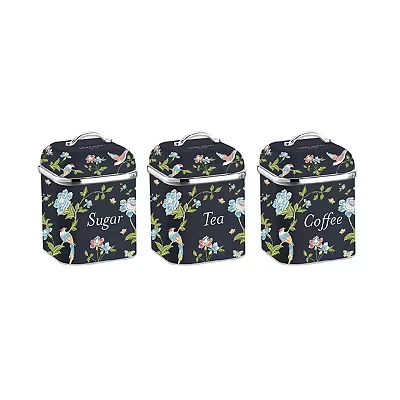 VQ Laura Ashley Tea Coffee and Sugar Canisters Set of 3 Stainless Steel Containers with Removable Lids Printed Storage Jars & Kitchen Elveden Navy