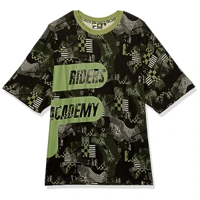 VR 46 Men's Oversized AOP Fila Riders Academy T Shirts, Green, L
