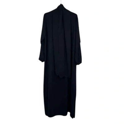 VR2 Denim Ladies Abaya with Scarf Hijab Attached, Long Sleeve Modest Dress for Women, Black Colour, One Size UK 8 18