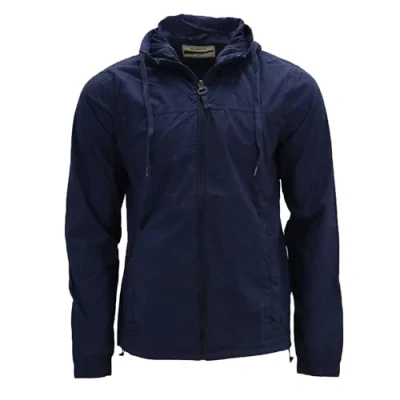 VR2 Denim Mens Windproof Jacket Full Zip Hooded Long Sleeve Light Weight Jackets for Men, Navy Colour, Size S