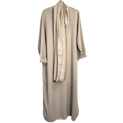 VR2 Denim Womens Luxury Gold Trim Abaya & Matching Hijab Set, Modest Wear Length 55 56"