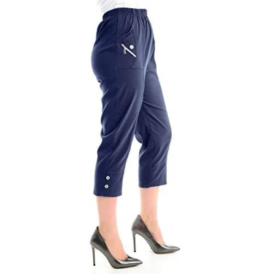 VR7 Womens Ladies Elasticated 3/4 Shorts Cropped Capri Trousers Stretchy Pockets Pants (UK 22, Navy Blue)