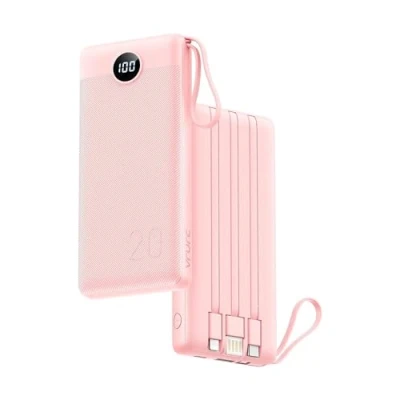 ⚡【Portable Charger with Built-in Cables Fast Charging】This 20000 mAh portable charger battery has a built-in Micro cable, Type C cable, and another cable for iPhone, total of three durable output cables. It's convenient to charge for all smart devices directly. Also, the USB C portable charger has a built-in USB cable for recharge the power bank itself directly. Wherever you go, don't need to carry any extra cords. ⚡ 【PD & QC Up to 22.5W Fast Charging】 In line with the latest charging standards, this power bank with USB output charging port supports up to 22.5W fast charging, allows your phone to be fully charged quickly. ⚡【Charges 4 Devices Simultaneously】Power Bank USB C Quick Charge portable charger with 4 output (Type-C cable,Micro cable, another cable, USB-A port), compatible with iPhone, Samsung, Android etc. supports charging for 4 devices same time, no worry about not being able to charge because forgot to carry cable. ⚡【Two Way To Charge The Power Bank】 One is charging the power bank through the 18W Type C input port will be fully charged within 6 hours. The other is using the power bank built-in USB-A charging input cable will be fully charged within 11 hours. ⚡【Anti-Slip And Drop-proof Design】The power bank USB C only has 6.14*2.76*1.03 inch and 13.96 Oz.Non-slip and anti-scratch design on the surface let this item like new for a long time. The cord on the right of the portable power bank can be used as a lanyard to hanging on the backpack to prevent falling. It can be used as a micro cable to charge for Android When it's drawn out. ⚡【Accurate LED Display】Power bank 20000mah with intelligent LED display can clearly understand the battery remaining power to prevent it from running out of power. 【PRODUCT PACKAGE】1× 20000mah Power bank, 1x User Manual.*PLEASE NOTE: Sold after February 2022 is the upgraded power bank, the product packaging does not include the portable bag!!!! If you have any questions or problems, please feel free to contact us and we will solve them for you within 12 hours.