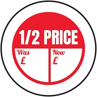 Clear text and symbols allow easy identification, ideal for ensuring your customers can easily spot a bargain Labels should be clearly displayed where customers can see them Permanent acrylic adhesive with a high initial tack, excellent adhesion and good low temperature performance on a wide variety of surfaces Easy to apply - labels come with their own adhesive Suitable for internal use only