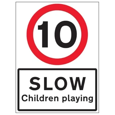 VSafety 10 MPH Children Playing 600x800mm Class RA1 Reflective 3mm Aluminium Composite With Anti Graffiti Coating & Fixing Channel Safety Sign