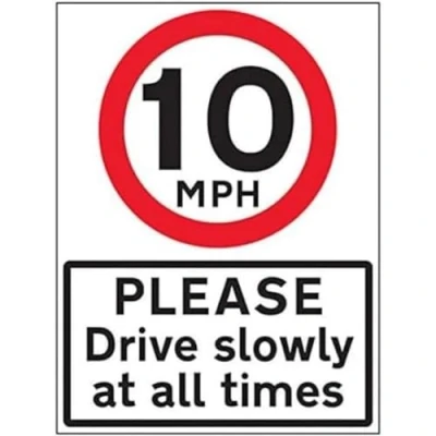 VSafety 10 MPH Please Drive Slowly 600x800mm Class RA1 Reflective 3mm Aluminium Composite With Anti Graffiti Coating Safety Sign
