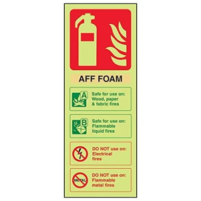 Helps fulfil obligations to convey essential information relating to fire fighting equipment as per Health and Safety (Safety Signs & Signals) Regulations 1996 Conforms to EN ISO 7010:2012 Portrait Orientation. Sign reads "Safe For Use On Wood, Paper & Fabric Fires. Safe For Use On Flammable Liquid Fires. DO NOT Use On Electrical Fires. DO NOT Use On Flammable Metal Fires" Highly durable Glow In The Dark 1mm plastic material and screen printed message will stand the test of time Sign measures 75 x 200mm.