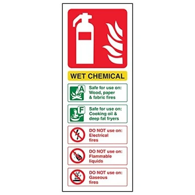 Helps fulfil obligations to convey essential information relating to fire fighting equipment as per Health and Safety (Safety Signs & Signals) Regulations 1996 Conforms to EN ISO 7010:2012 Portrait Orientation. Sign reads "Safe For Use On Wood, Paper & Fabric Fires. Safe For Use On Cooking Oil & Deep Fat Fryers. DO NOT Use On Electrical Fires/Flammable Liquids/Gaseous Fires" Highly durable 1mm plastic material and screen printed message will stand the test of time Sign measures 75 x 200mm.