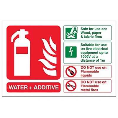 Helps fulfil obligations to convey essential information relating to fire fighting equipment as per Health and Safety (Safety Signs & Signals) Regulations 1996 Conforms to EN ISO 7010:2012 Landscape Orientation. Sign reads "Safe On Wood, Paper & Fabric Fires. Suitable For Use On Live Electrical Equipment Up To 1000v At A Distance Of 1m. DO NOT Use On Flammable Liquids/Metal Fires" Highly durable 1mm plastic material and screen printed message will stand the test of time Sign measures 150 x 100mm.