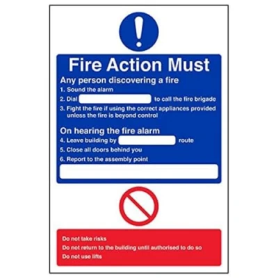 Provides essential information regarding action to be taken in the event of a fire Conforms to EN ISO 7010:2012 Portrait Orientation. Sign reads "Fire Action. Any Person Discovering A Fire." Highly durable Self Adhesive Vinyl material and screen printed message will stand the test of time Sign measures 200 x 300mm. Self Adhesive material will adhere securely to most surfaces