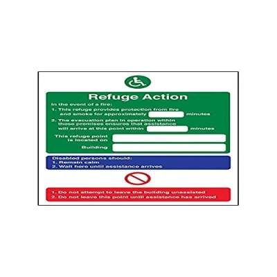 Provides essential information regarding action to be taken in the event of a fire Conforms to EN ISO 7010:2012 Portrait Orientation. Sign reads "Proper Case. In The Event Of A Fire: This Refuge Provides Protection From Fore And Smoke. This Refuge Point Is Located On" Highly durable 1mm plastic material and screen printed message will stand the test of time Sign measures 150 x 200mm.