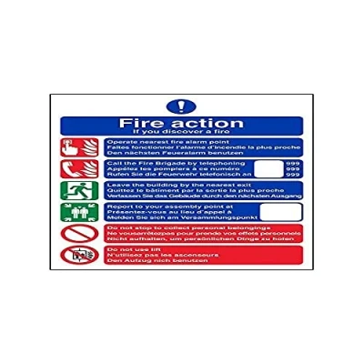 Provides essential information regarding action to be taken in the event of a fire Conforms to EN ISO 7010:2012 Portrait Orientation. Sign reads "Fire Action. If You Discover A Fire. Operate Nearest Fire Alarm Point. Call The Fire Brigade. Leave The Building By The Nearest Exit. Report To Your Assembly Point" Highly durable Glow In The Dark 1mm plastic material and screen printed message will stand the test of time Sign measures 200 x 300mm.