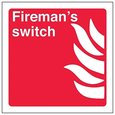 Helps fulfil obligations to convey essential information relating to fire fighting equipment as per Health and Safety (Safety Signs & Signals) Regulations 1996 Conforms to EN ISO 7010:2012 Square Orientation. Sign reads "Fireman's Switch" Highly durable Self Adhesive Vinyl material and screen printed message will stand the test of time Sign measures 100 x 100mm. Self Adhesive material will adhere securely to most surfaces