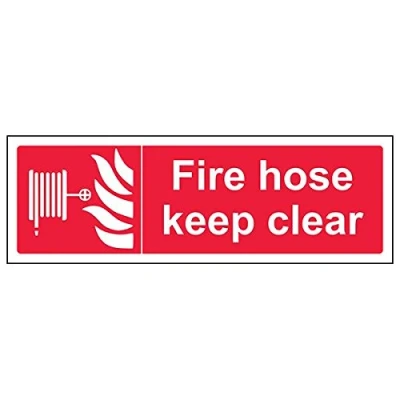 Helps fulfil obligations to convey essential information relating to fire fighting equipment as per Health and Safety (Safety Signs & Signals) Regulations 1996 Conforms to EN ISO 7010:2012 Landscape Orientation. Sign reads "Fire Hose Keep Clear" Highly durable 1mm plastic material and screen printed message will stand the test of time Sign measures 300 x 100mm.
