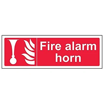 Helps fulfil obligations to convey essential information relating to fire fighting equipment as per Health and Safety (Safety Signs & Signals) Regulations 1996 Conforms to EN ISO 7010:2012 Landscape Orientation. Sign reads "Fire Alarm Horn" Highly durable 1mm plastic material and screen printed message will stand the test of time Sign measures 300 x 100mm.