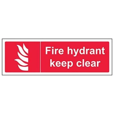 Helps fulfil obligations to convey essential information relating to fire fighting equipment as per Health and Safety (Safety Signs & Signals) Regulations 1996 Conforms to EN ISO 7010:2012 Landscape Orientation. Sign reads "Fire Hydrant Keep Clear" Highly durable Self Adhesive Vinyl material and screen printed message will stand the test of time Sign measures 300 x 100mm. Self Adhesive material will adhere securely to most surfaces