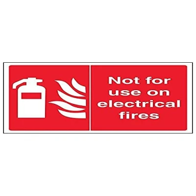 Helps fulfil obligations to convey essential information relating to fire fighting equipment as per Health and Safety (Safety Signs & Signals) Regulations 1996 Conforms to EN ISO 7010:2012 Landscape Orientation. Sign reads "Not For Use On Electrical Fires" Highly durable 1mm plastic material and screen printed message will stand the test of time Sign measures 200 x 150mm.
