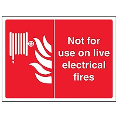 Helps fulfil obligations to convey essential information relating to fire fighting equipment as per Health and Safety (Safety Signs & Signals) Regulations 1996 Conforms to EN ISO 7010:2012 Landscape Orientation. Sign reads "Not For Use On Live Electrical Fires" Highly durable 1mm plastic material and screen printed message will stand the test of time Sign measures 200 x 150mm.